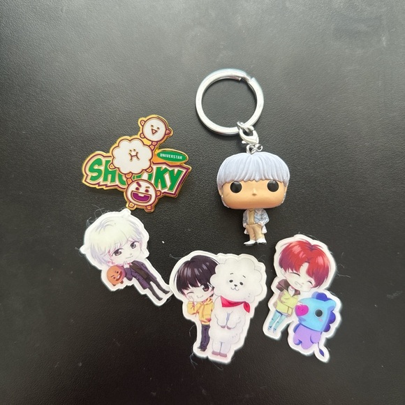 Fun keychain with character figure. Includes colorful character stickers. Perfect for fans and collectors.