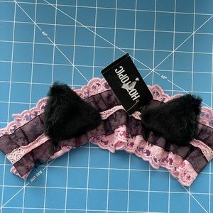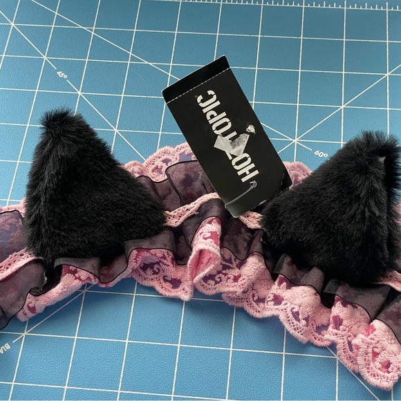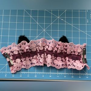 Hot Topic Kitty Ears Clip In Accessory NWT Pink Lace and Black Furry Ears with Hair Clips to Stabilize