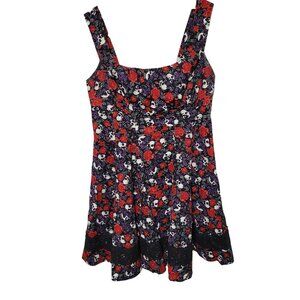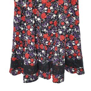 Hot Topic L 11 Dress Skull Floral Gothic Spooky Chic Floral Skater Flare Whimsy