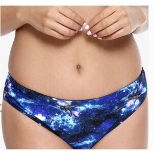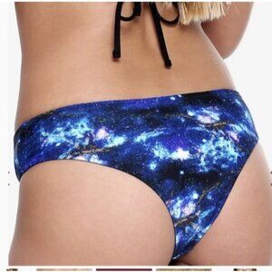 Hot Topic Medium Galaxy Reversible Black Blue Halter Top Cheeky Bikini Bottoms