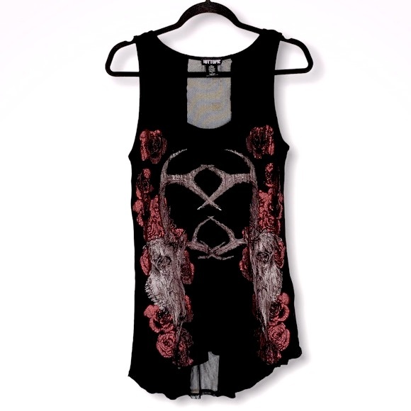 Hot Topic Mesh Inset Panel Sides Glitter Roses Tank Top