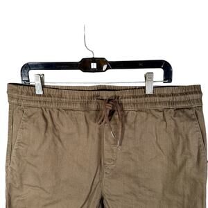 Hot Topic NWT Men's Large HT Denim Brown Jogger Shorts Drawstring Raw Hem