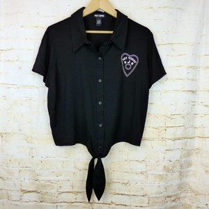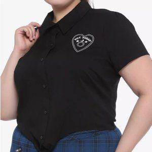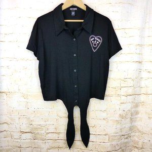 Hot Topic Not Today Planchette Tie Front Button Up Top Womens Plus 1 Black Goth