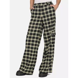 Hot Topic Pants Womens Large Yellow Black Plaid Wide Leg Trousers Cargo Grunge