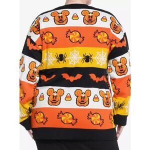 This boo-tiful knit cardigan sweater features bold stripes inspired by candy corn, and comes with Disney Halloween icons knit throughout like Mickey Mouse pumpkin heads, candy, bats, and more. Comes with Mickey Mouse-shaped front pockets and candy corn buttons.
