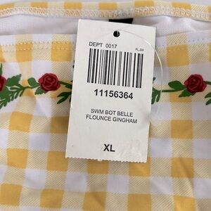 Here is s size Hot Topic Plus Size Disney’s Belle Flounce Gingham swim suit bottom NWT A collaboration between hot topic and Disney