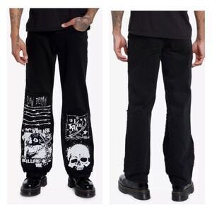 Hot Topic Punk Patch Jeans Mens *34 Slow Decay Skull Grunge Black Goth Graphic
