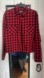 Bold checkered shirt by Hot Topic. Features button-up front and dual chest pockets.