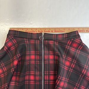 Hot Topic Skirt Womens Large Red Plaid Zip Off Circle Short Academia Pockets EUC