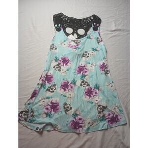 Hot Topic Skull Floral Tank Top Blue Purple Black Women Size Small NWT