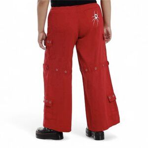 Hot Topic Social Collision Wide Leg Pants 18 Red Punk Spider Graphic Gothic Punk