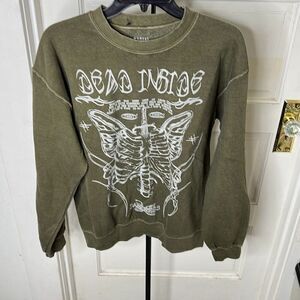 Hot Topic Social Collision Dead Inside Skeleton Sweatshirt Green Small