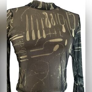 Hot Topic Surgery Tools Black Mesh Mock Neck Retro Sheer Flare Sleeve Crop Top M