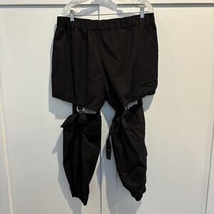 Design/Features: Elastic waistband; on-seam hand pockets; adjustable straps with D-ring hardware; detachable/convertible leg panels; elastic cuffs at ankles; streetwear goth/punk techwear styling