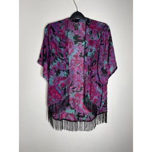 Hot Topic Tie Dye Fringe Kimono Purple Size Medium