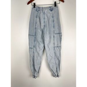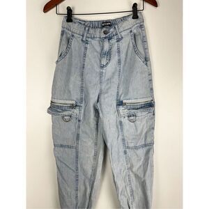 Hot Topic Women's Cargo Jogger Denim Jeans Pants Washed Blue Size Small