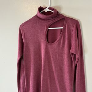 Hot Topic Womens Long Sleeve Turtleneck Cutout Maroon Top Sz Small