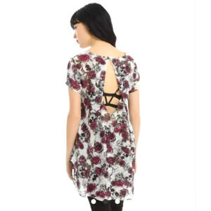 Hot Topic Women's Skull & Roses High Low Hem Blouse Size Large