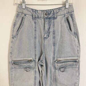 Hot Topic Y2K Retro Cargo Jogger Jeans pockets light wash high rise size 5