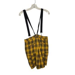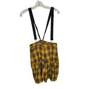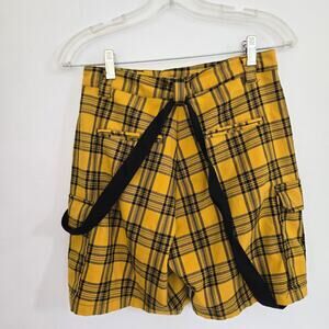 Hot Topic Yellow Plaid Cargo Suspender Bermuda Shorts