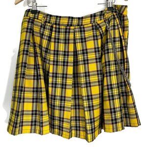 Hot Topic Yellow Plaid Pleated Skirt Removable Chain 1X
