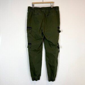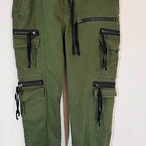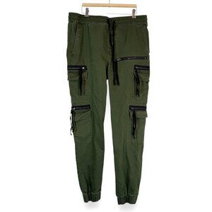 Hot Topic Zipper Cargo Pocket Jogger Pants Utility Elastic Waist Olive Green XL