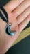 Hot Topic celestial theme black enamel crescent moon charm necklace on a thin black band that has a sueded or velveteen type material. Measurements in the photos. Worn a few times, very good preowned condition