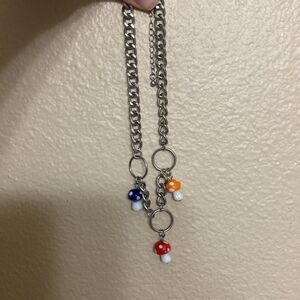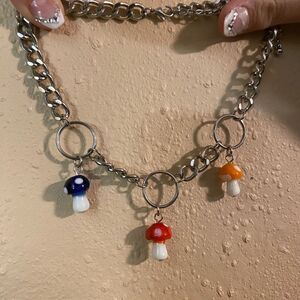 Hot Topic chunky retro Y2K Mushroom O-Ring Chain Choker 🍄 necklace with charms