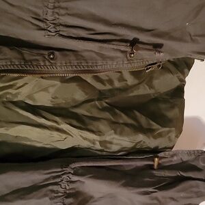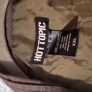 casual jacket with lace skull. Zipper and snaps. metal tipped draw strings.