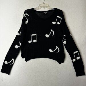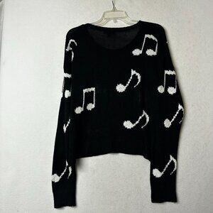 Hot Topic sweater sz large black with white music notes cropped novelty top