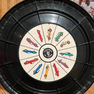 Vintage 1968 Mattel red line Hot Wheel rally case. The case is missing front and back stickers and the inside sticker has handwriting naming the cars. You can purchase the replacement stickers on line. Has 3 snaps and 1 handle all in working condition. It holds 24 hot wheels. The red lettering on the front has some wear. Overall in fair shape.