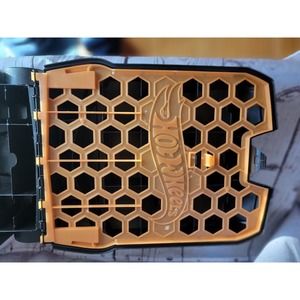 Hot Wheels 100 Car Rolling Storage Case, Retractable Handle + 11 Random Cars. In good condition does have some play wear and some dirt on the front from storage. Does have a mark on the front sticker
