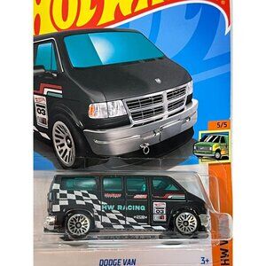 dodge van, hw vans, 2024 hot wheels, black checker racing, 248/250, tuner van, collector car, hot wheels mainline, diecast van, retro custom, 1:64 scale