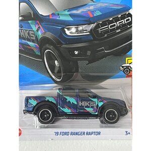 New 2024 Hot Wheels ’19 Ford Ranger Raptor from the HW Hot Trucks series (2/10, mainline 43/250). Designed in metallic blue with HKS racing graphics and black wheels, this rugged off-road pickup delivers style and power. Perfect for collectors, off-road fans, or anyone who loves a bold Hot Wheels truck. Card is crisp and unopened.