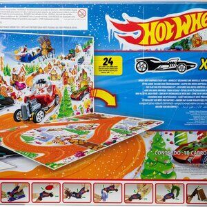 With 34 pieces in all, collectors and kids 3 years old and up can rev up the holiday spirit with 24 days of Hot Wheels!