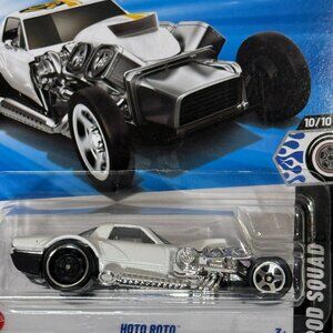 Brand new Hot Wheels Hoto Roto from the 2025 mainline series. Part of the Rod Squad lineup and finished in a clean white and chrome combo. Features exposed engine detail, bold hot rod styling, and crisp card art. Card and blister are in new, unopened condition. Great addition for collectors or anyone completing the 2025 series.