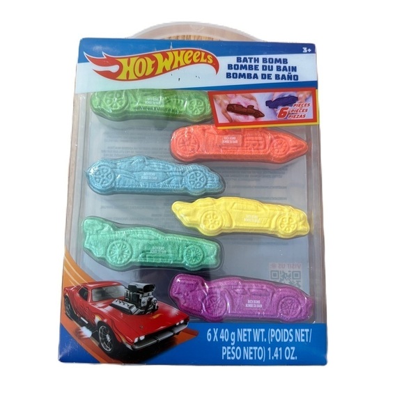 Make bath time fun with the Bath Bomb Set. Includes vibrant colors like red, orange, yellow, green, blue, and purple. Perfect for kids who love cars and colors.