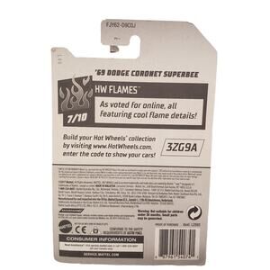 Hot Wheels 69 Dodge Coronet Superbee Numbered Die Cast Car with Flames