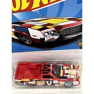 new on card, sealed, hot wheels ranchero, art cars 2021, red grid deco, 1:64 scale, classic cars, collectible diecast, vintage style, collectors favorite, muscle car, display car, hobby collection