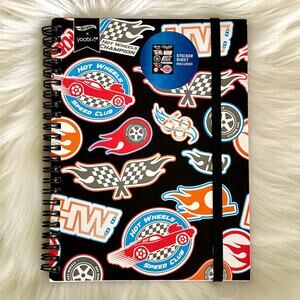 1 Hot Wheels Black/Allover Signs & Logos Cover Spiral Bound Journal/Notebook w/ Bonus Sticker Sheet (6" x 8" // 80 lined sheets)