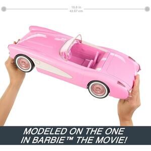 Zoom off to Barbie Land with the Hot Wheels RC Barbie Corvette! It’s just like the 1956 Corvette Stingray Barbie drives in Barbie The Movie!