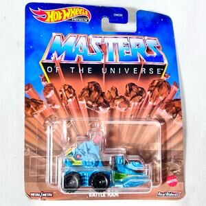 Introducing a Hot Wheels Carded Lot of 4 Masters of the Universe Toy Cars. Includes He-Man, Beast Man, Battle Ram, and Man-at-Arms. Each car is new and sealed in original packaging. The packaging has minor damage to the edges as shown in the pictures.