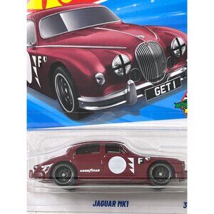 Hot Wheels, Jaguar MK1, Race Day series, 2021 Hot Wheels, British cars, classic cars, Goodyear, diecast collector, red Hot Wheels, racing car, 1:64 scale
