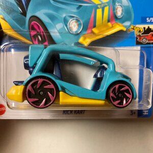 The car comes in an unopened box and is perfect for collectors or children who want to play with a cool car. The Hot Wheels Kick Kart is blue in color. It's a great addition to any Hot Wheels collection and is sure to provide hours of entertainment.