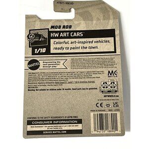 Turn up the heat in your collection with the Hot Wheels Mod Rod from the 2021 Art Cars series. Featuring a sleek burgundy and gold design, this car merges retro hot-rod style with creative art-inspired flair. Factory-sealed card in clean condition, ready for collectors or display.