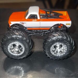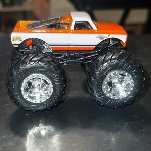 Crush your playtime with the Hot Wheels Monster Jam Truck PURE MUSCLE, a diecast replica of the iconic Orange & White Chevrolet C-10.