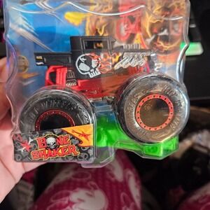 NWOT, SKU J010. Unleash monstrous mayhem with the Hot Wheels Monster Trucks Bone Shaker! This 1:64 scale die-cast vehicle embodies the iconic Bone Shaker design, complete with its signature skull and crossbones motif and oversized wheels ready to crush the competition. The vibrant colors and detailed graphics make it a standout addition to any collection, while its sturdy construction ensures it can withstand even the most epic crashes and stunts. Perfect for imaginative play, display, or adding to your Hot Wheels Monster Trucks lineup, this Bone Shaker is sure to ignite the thrill of monster truck action. Ideal for birthday parties, holiday gifts, or simply adding some high-octane fun to playtime.
