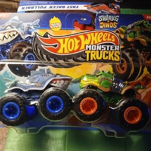 Hot Wheels Monster Trucks - SHARKS V DINOS .. GREAT WHITE VS RAGEASAUR