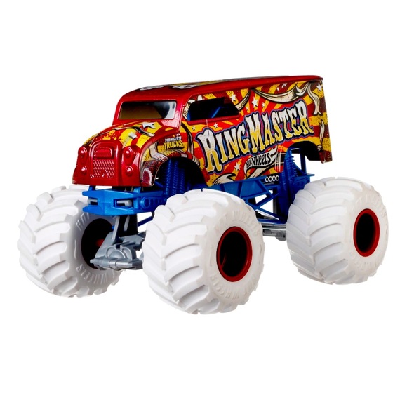 The Hot Wheels Monster Trucks 1:24 scale die-cast trucks are THE baddest trucks ever built for competition and ultimate dominance! Ready to square off in head-to-head battles with their oversized body and GIANT wheels! Every truck package provides stats for each monster truck including name, truck type, strength, unique crash attack and motor-vation for great storytelling fun!