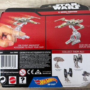Collectible Die-cast X-Wing Fighter with a flight navigator and display stand for imaginative play or collection. Compatible with other Hot Wheels Star Wars sets.